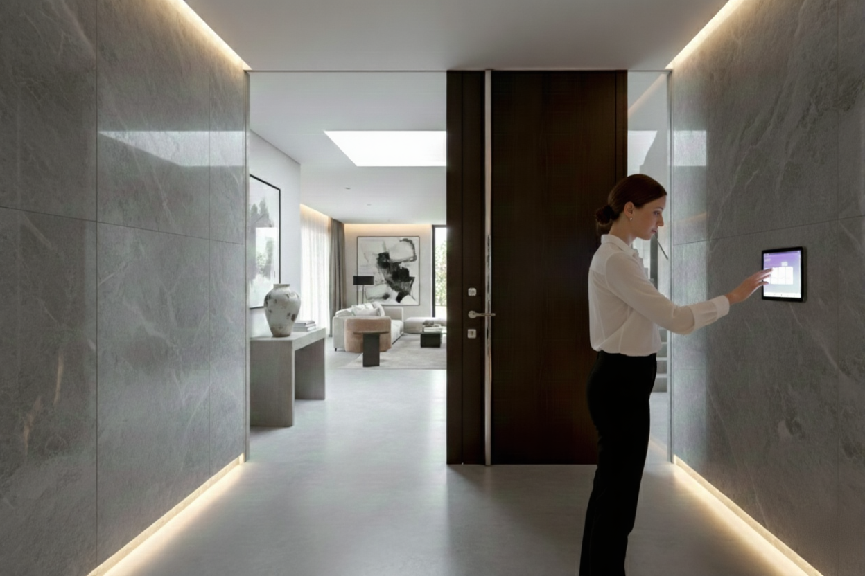 Control your entire home from one central screen. Manage lighting, shutters, climate, security, and all connected devices with a simple, intuitive interface.